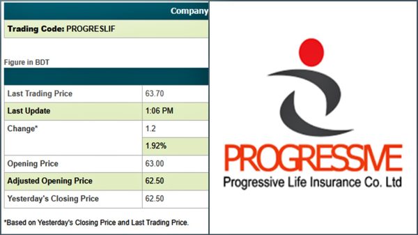 পুঁজিবাজারে তালিকাভুক্ত জীবন বিমা কোম্পানি প্রোগ্রেসিভ লাইফ ইন্স্যুরেন্স কোম্পানি লিমিটেডের শেয়ারদর ও লেনদেন সাম্প্রতিক সময়ে অস্বাভাবিকভাবে বৃদ্ধি পেয়েছে। অবশ্য কোম্পানিটি বলছে, তারা এই অস্বাভাবিক দরবৃদ্ধি ও লেনদেনের কারণ জানে না।